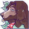 Pixel icon: portrayal of a character, with a plain background, some decoration (leaves, berries, flowers, etc.) and shadows.